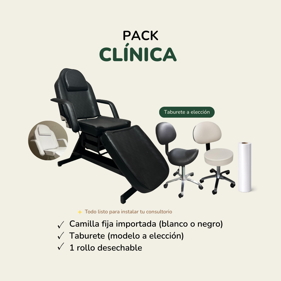 Este pack reúne camilla, taburete y rollo desechable, pensados para que empieces a atender con orden, comodidad e higiene, sin complicaciones.